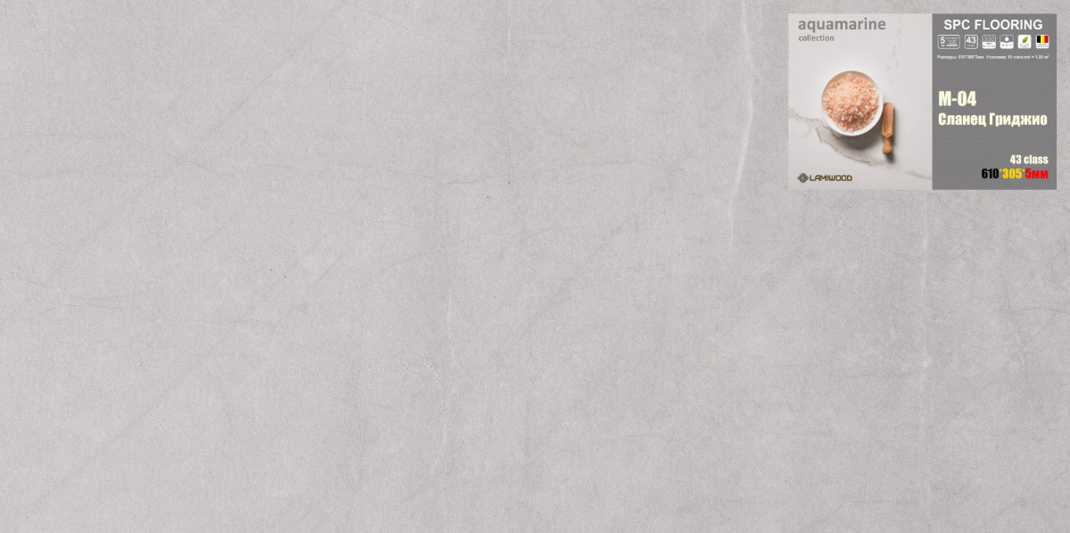 Сланец Гриджио из коллекции AQUAMARINE — это идеальное решение для вашего интерьера, сочетающее в себе элегантность и прочность. Этот современный материал, производимый компанией Lamiwood, подходит как для жилых, так и для коммерческих помещений, таких как квартиры, офисы и дома. Его светло-серый цвет легко вписывается в любые стилистические решения, обеспечивая гармонию и уют в вашем пространстве.