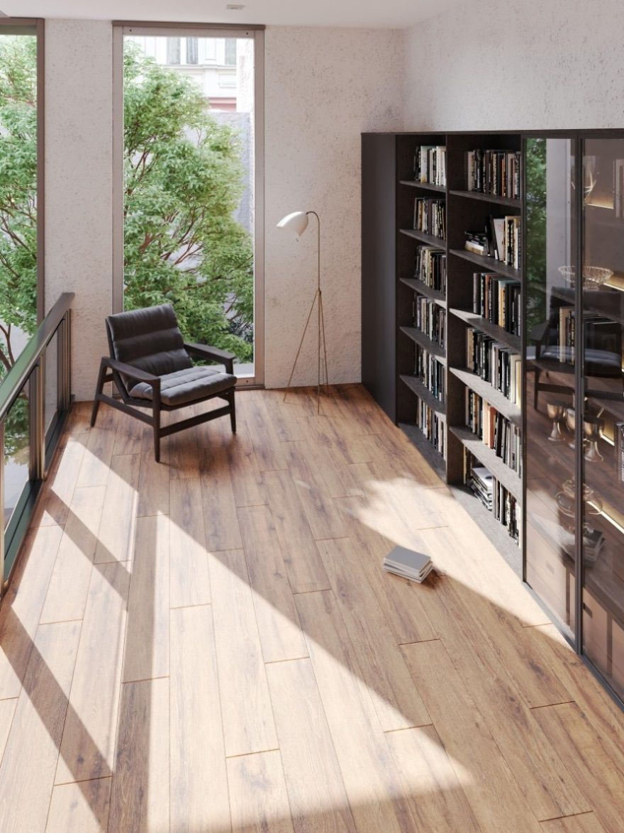 • Начинайте от дальнего угла комнаты, укладывая панели перпендикулярно окну. Это поможет скрыть стыки.
